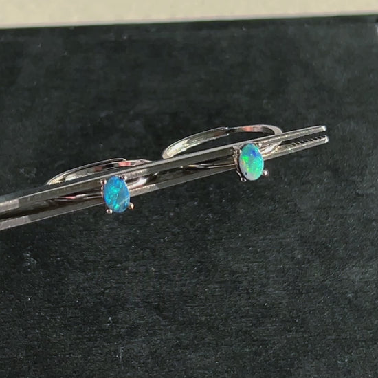 Australian Rainbow Blue Opal Adjustable 925 Sterling Silver Ring
