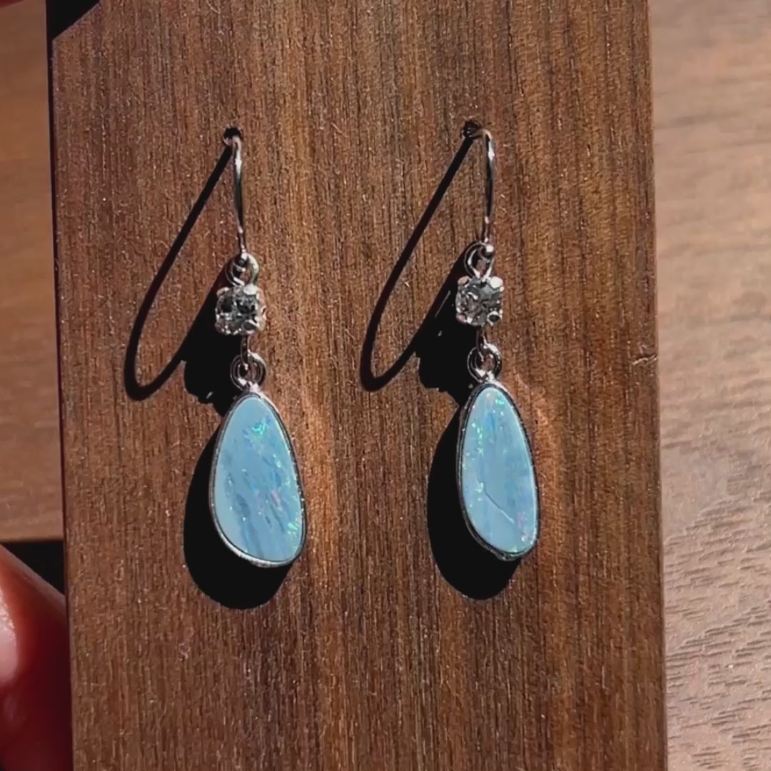 Australian Rainbow Blue Opal 925 Sterling Silver Dangle Earrings