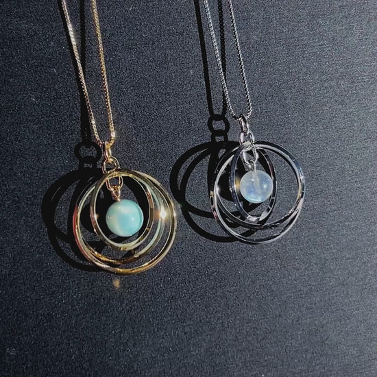 Blue Moonstone & Larimar Silver / 14k Gold Necklace (chain included)