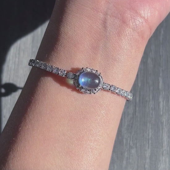 High Quality Aquamarine & Zircon Silver Adjustable Bracelet