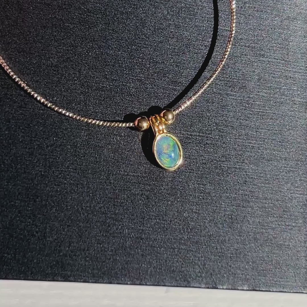 High Quality Australian Natural Rainbow Mini Opal 14k Gold Adjustable Bracelet