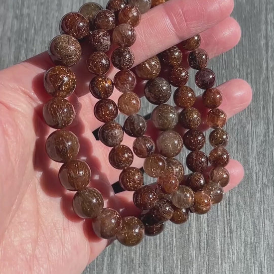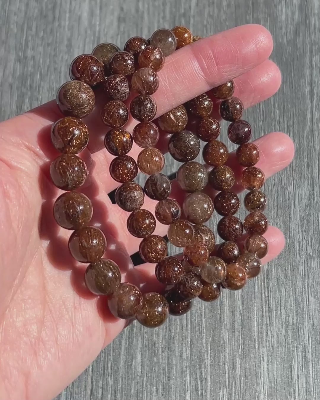 These copper rutilated quartz bracelets would be look darker without sunlight.
