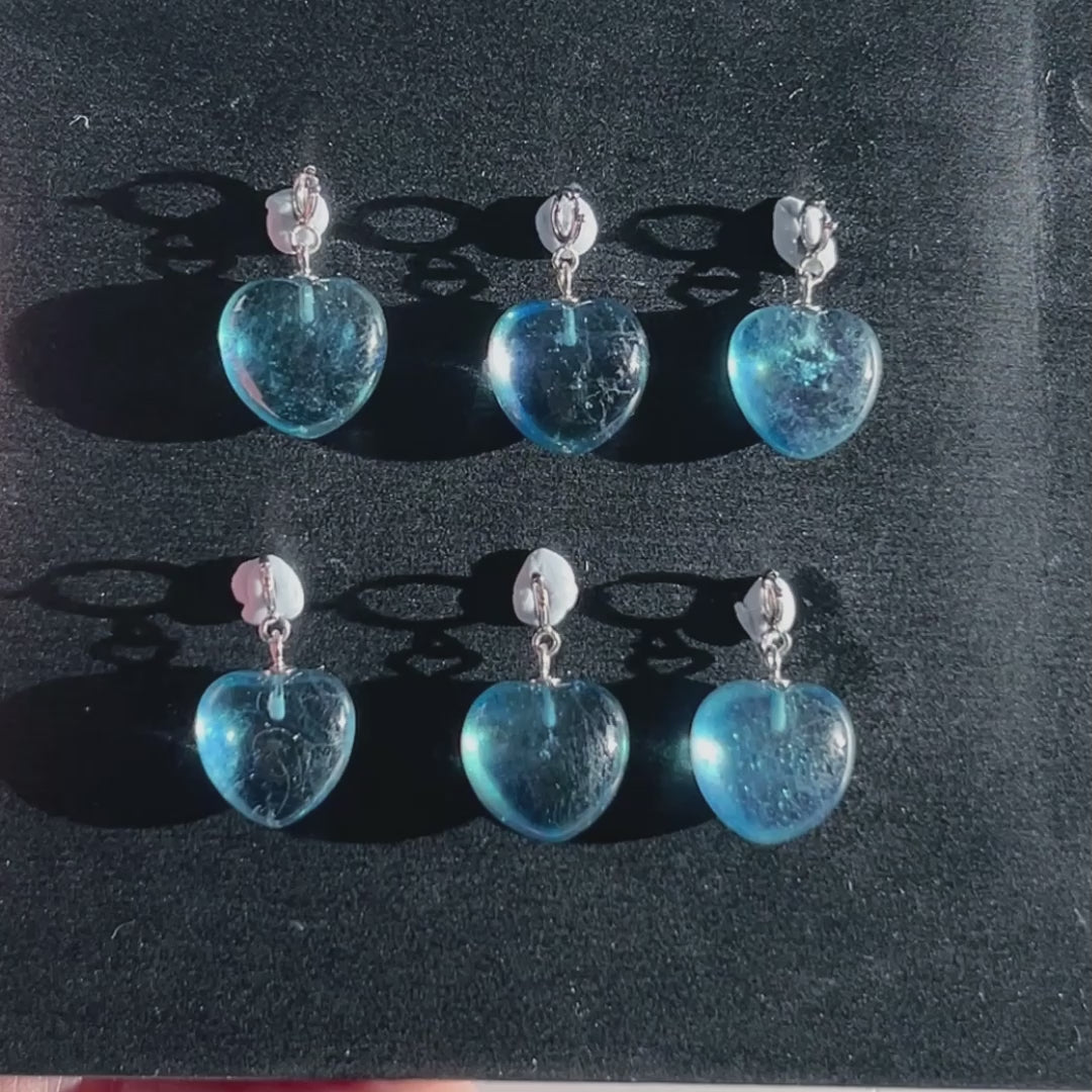High Quality Devil Blue Aquamarine in Heart Small Silver Charm Pendant (chain excluded)