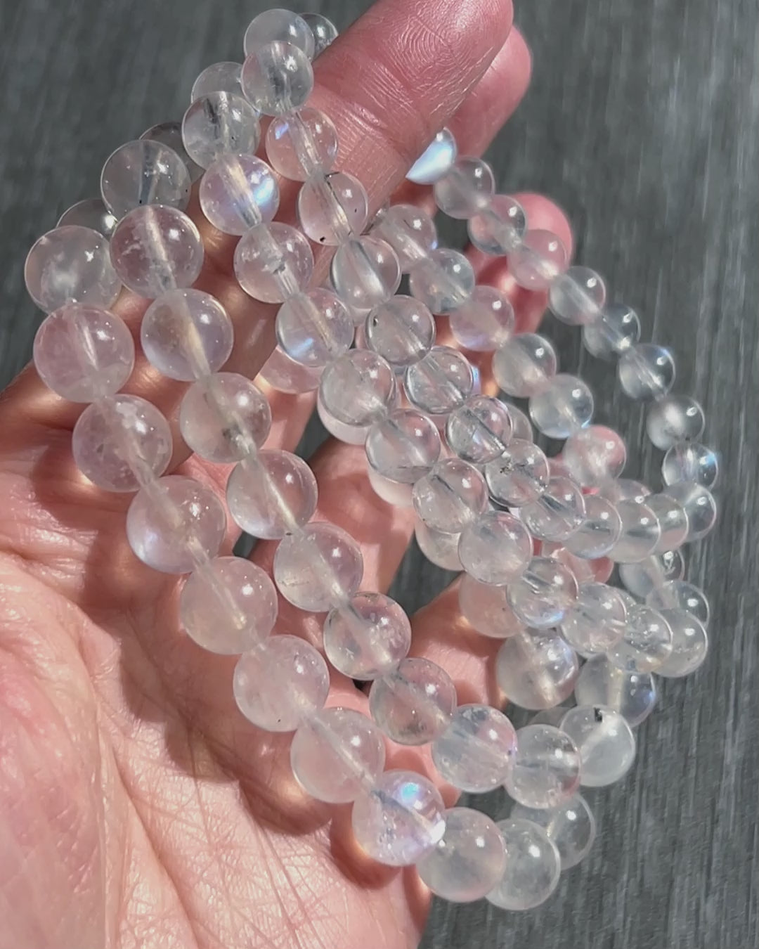 This batch of moonstone bracelets have black spots which is natural inclusions in few beads (see video), please make sure you are fine with them before purchase.