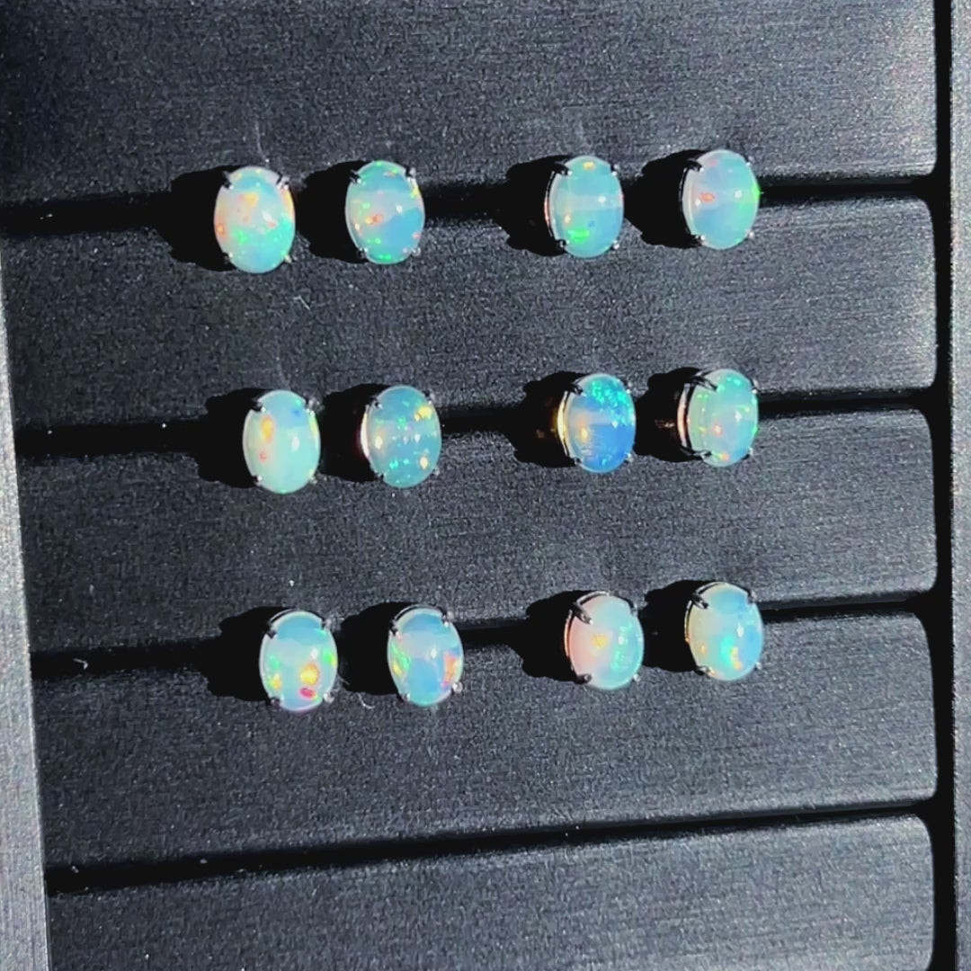 High Quality Rainbow Opal Stud Earrings in 925 Sterling Silver