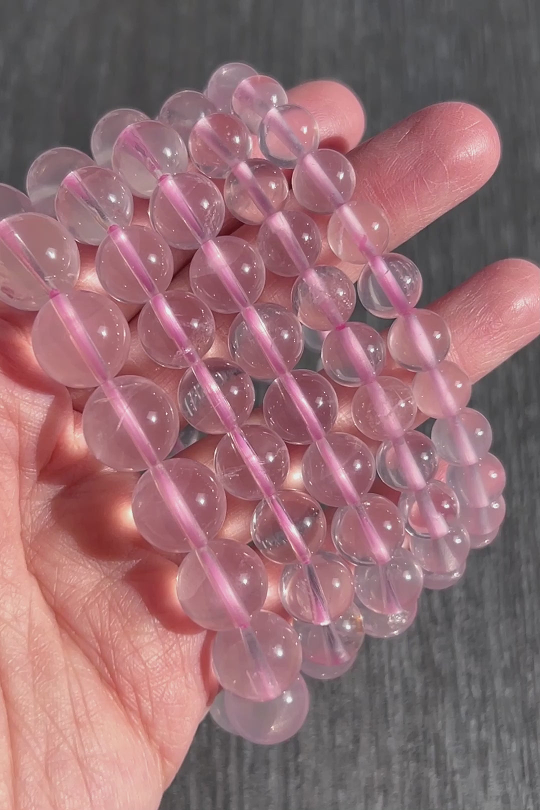 High Quality Rare Starlight Rose Quartz Bracelet in 8-12MM