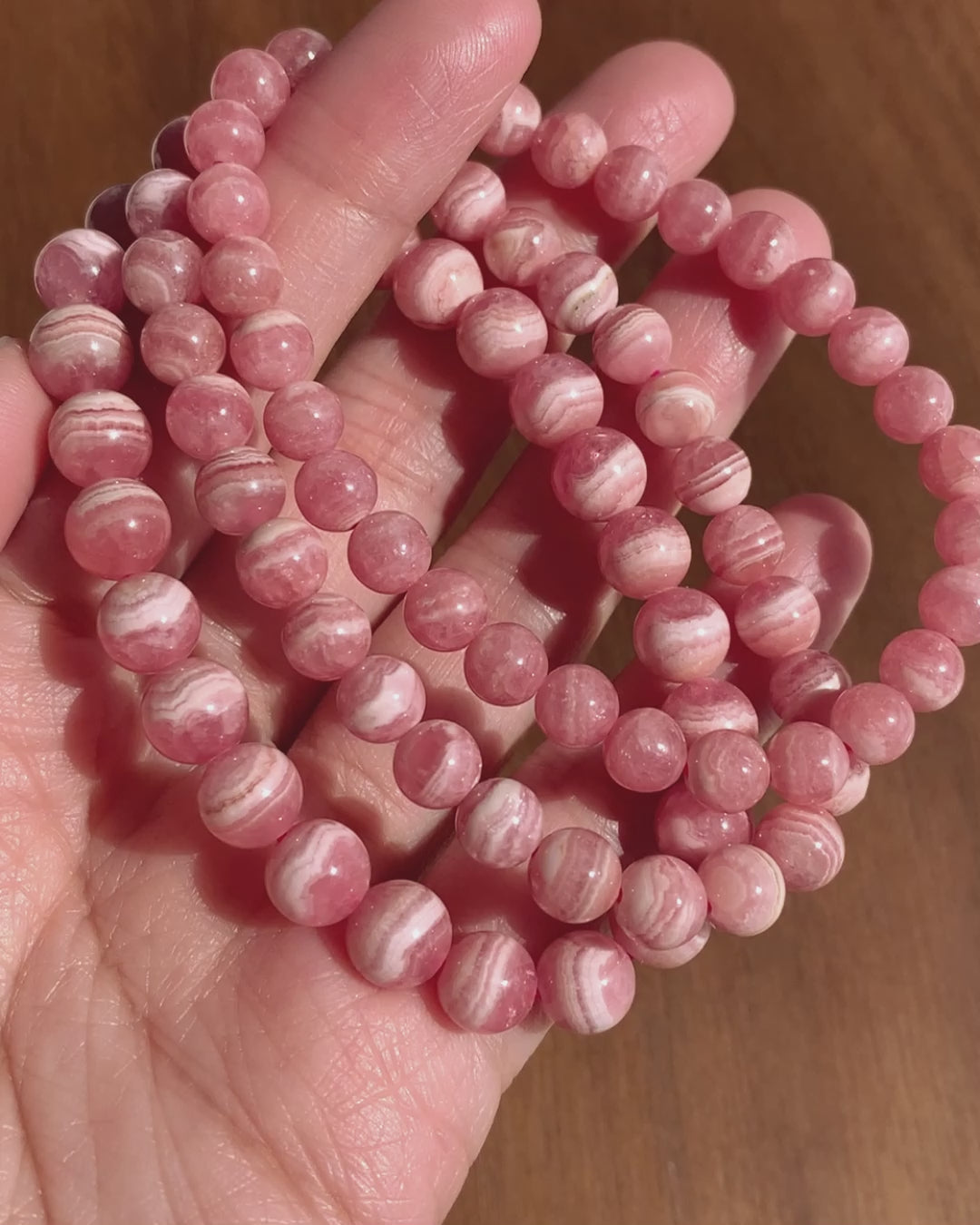 Rhodochrosite is a stone that integrates physical and spiritual energies, stimulating love and passion while energising the soul. Rhodochrosite opens the heart, lifting depression and encouraging a positive and cheerful outlook. It is an emotional balancer that clears away emotional wounds and scars from the past, and that nurtures love.