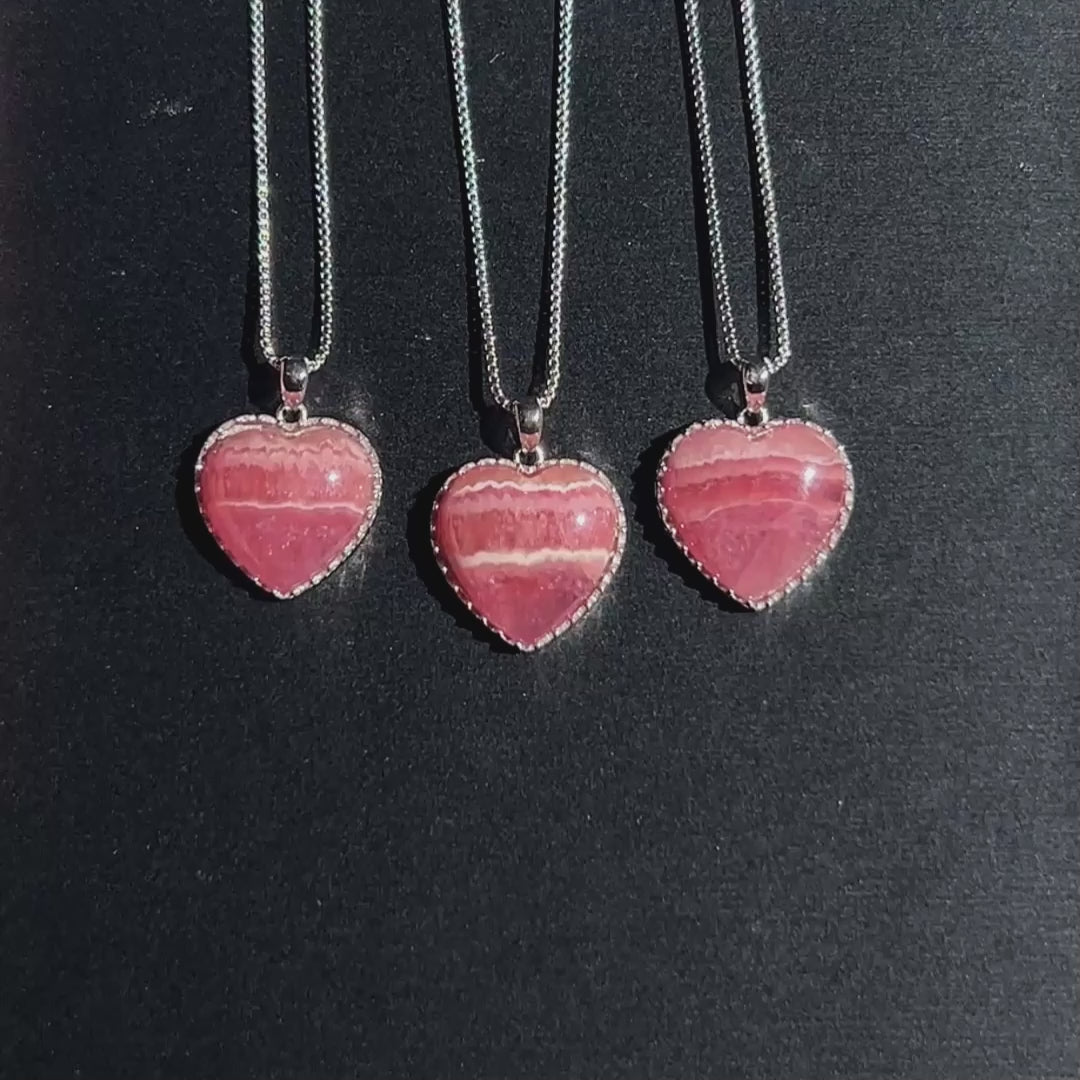 High Quality Rhodochrosite in Heart 925 Sterling Silver Pendant (chain excluded)