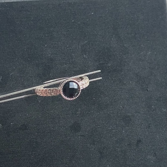 Natural Faceted Black Spinel Adjustable Silver Ring