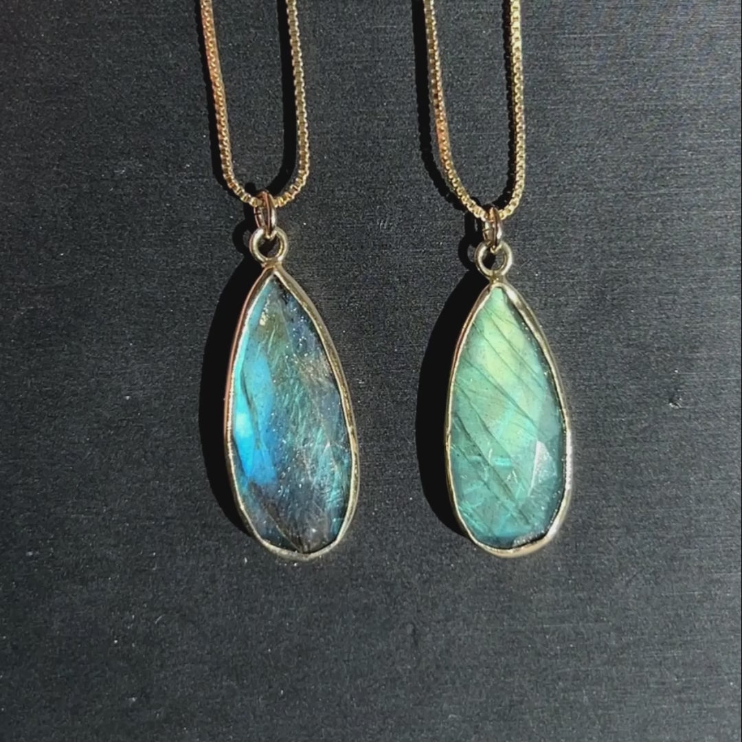 Natural Faceted Blue & Green Labradorite 14k Gold Pendant