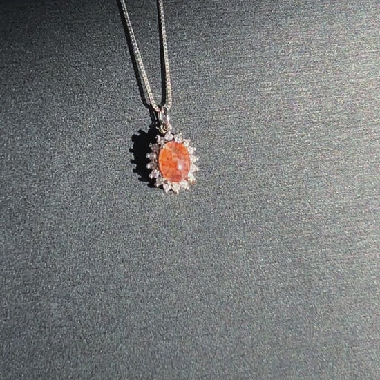 Natural Starry Sunstone Small Silver Pendant with Zircon (chain excluded)