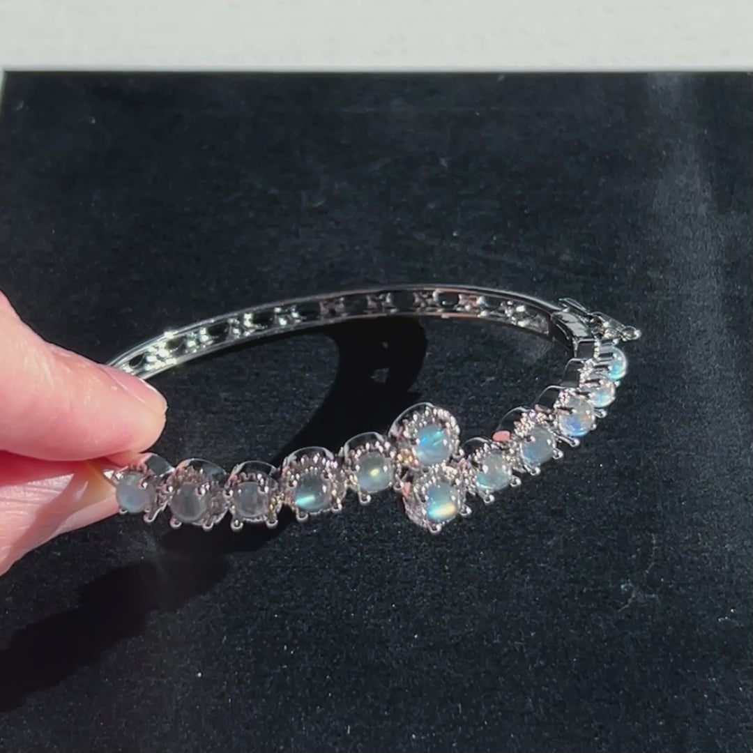 Natural Rainbow Blue Labradorite Free Size Silver Bangle with Zircon