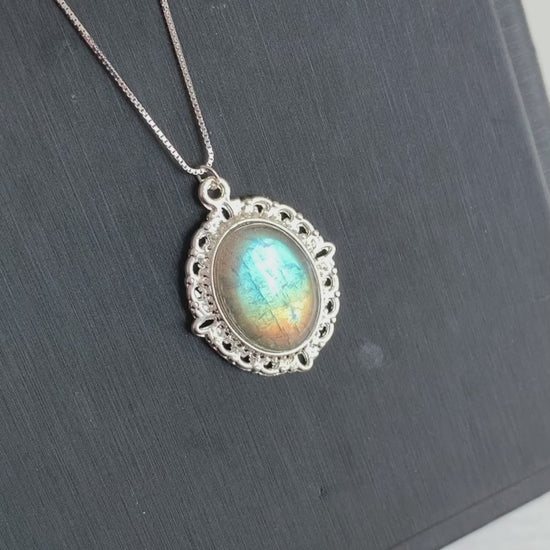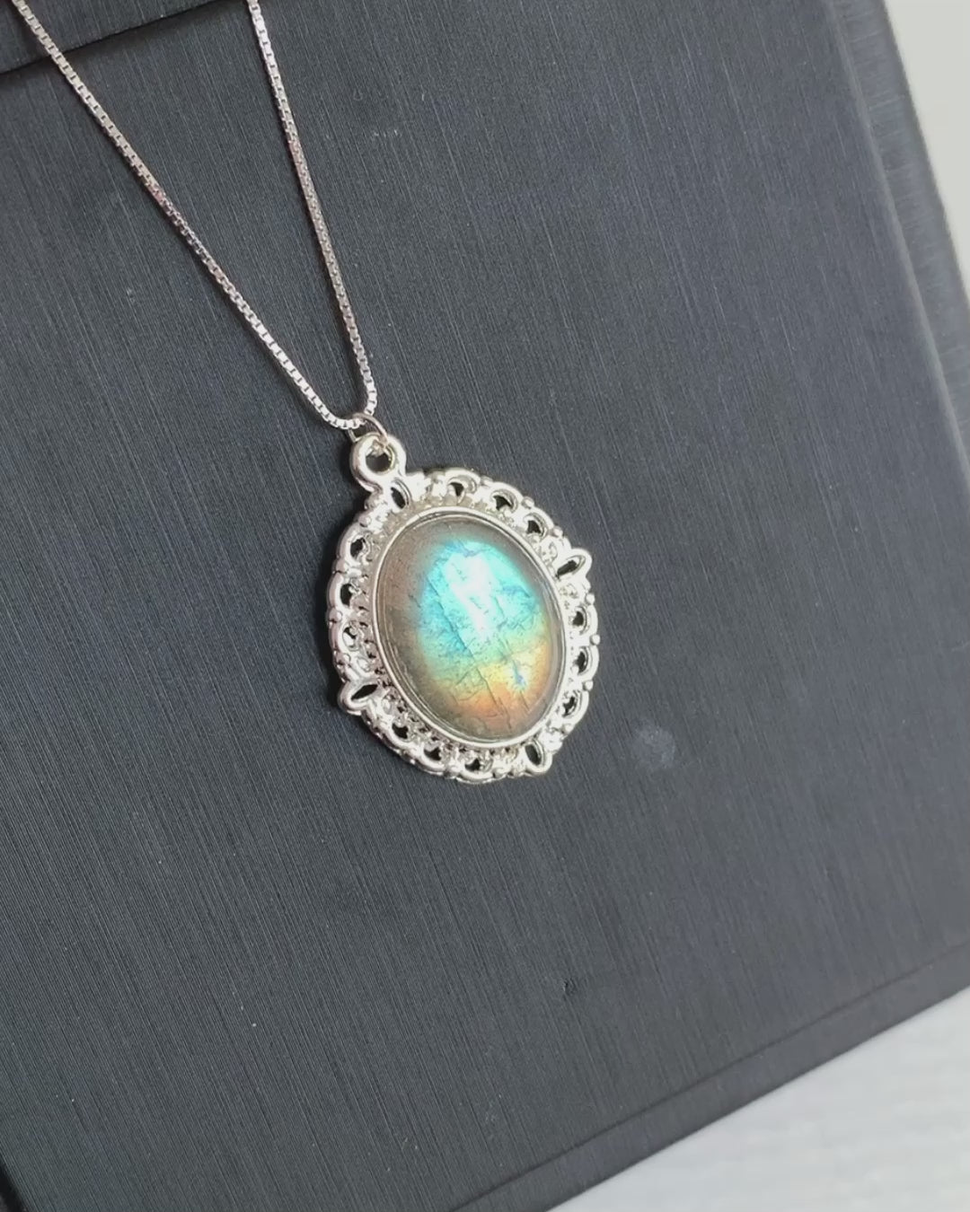 Natural Rainbow Labradorite Silver Pendant (chain excluded)
