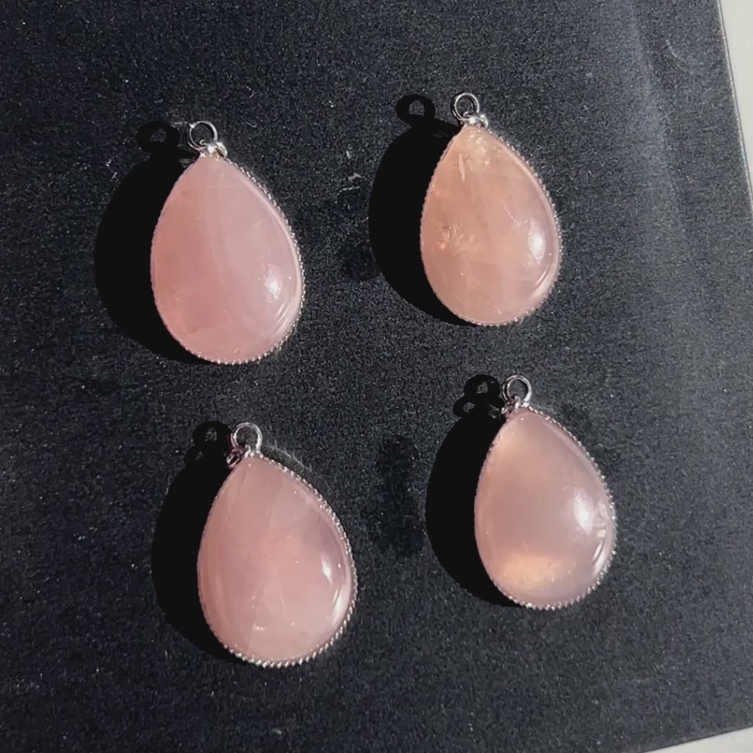 Natural Rose Quartz Silver Pendant (chain excluded)