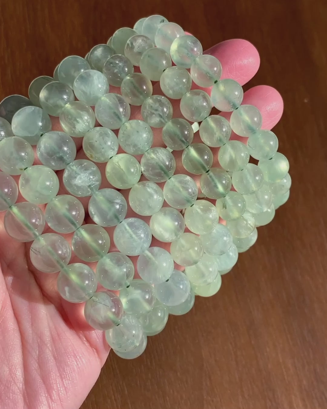 Prehnite is considered a stone of unconditional love and enhances precognition and inner knowing. Prehnite calms the environment and brings peace and protection. It teaches how to be in harmony with nature and the elemental forces. Prehnite alleviates nightmares, phobias and deep fears, uncovering and healing the disease that creates them.