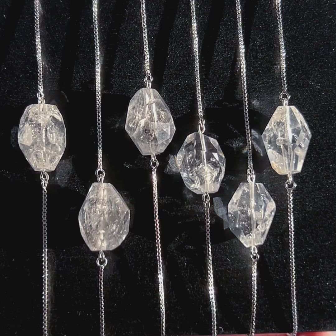 Rare Faceted Herkimer Diamond Silver Adjustable Bracelet