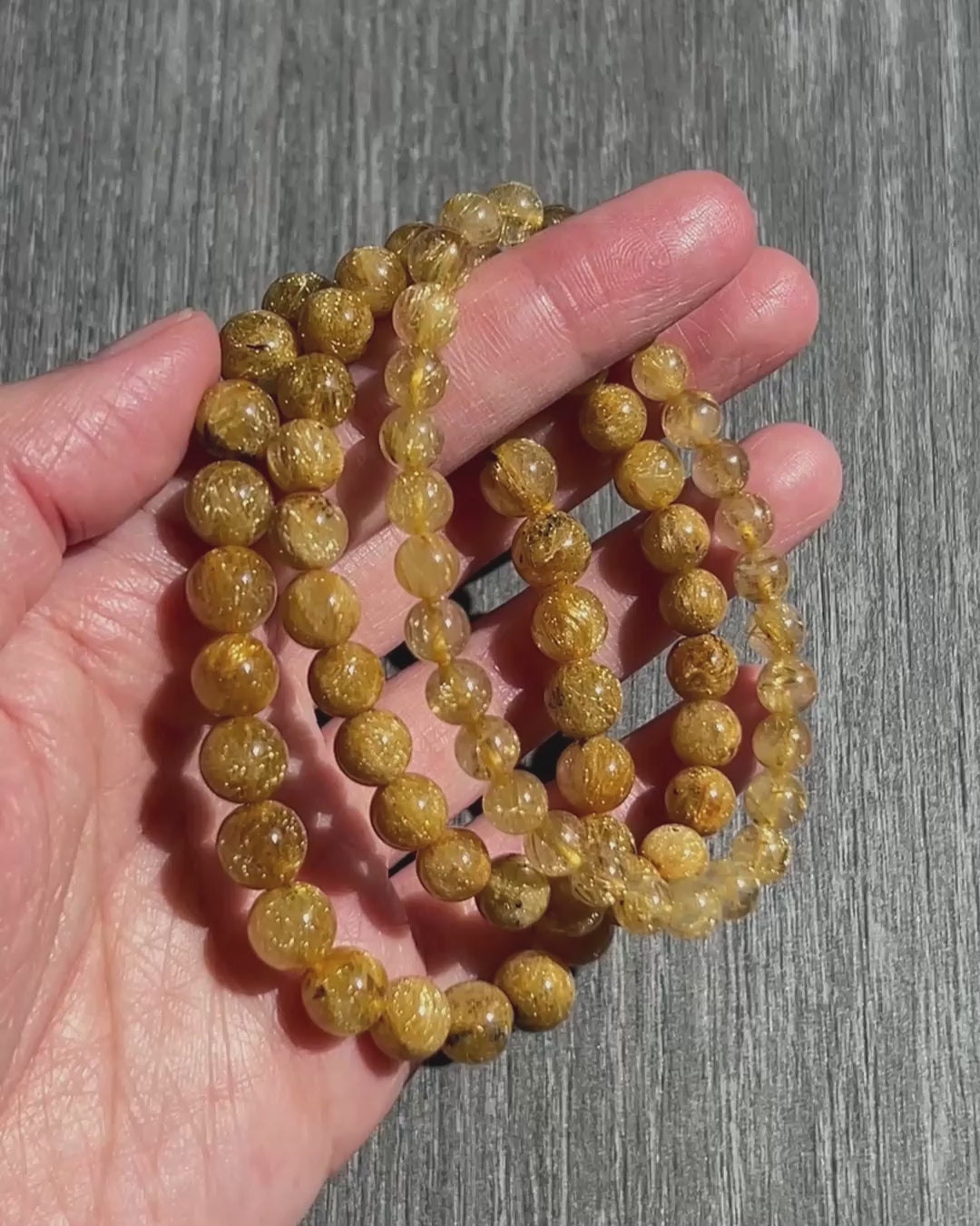 These golden rutilated quartz bracelets would be look darker without sunlight. 7 & 8mm bracelets have few natural black rutile inclusion in the beads.