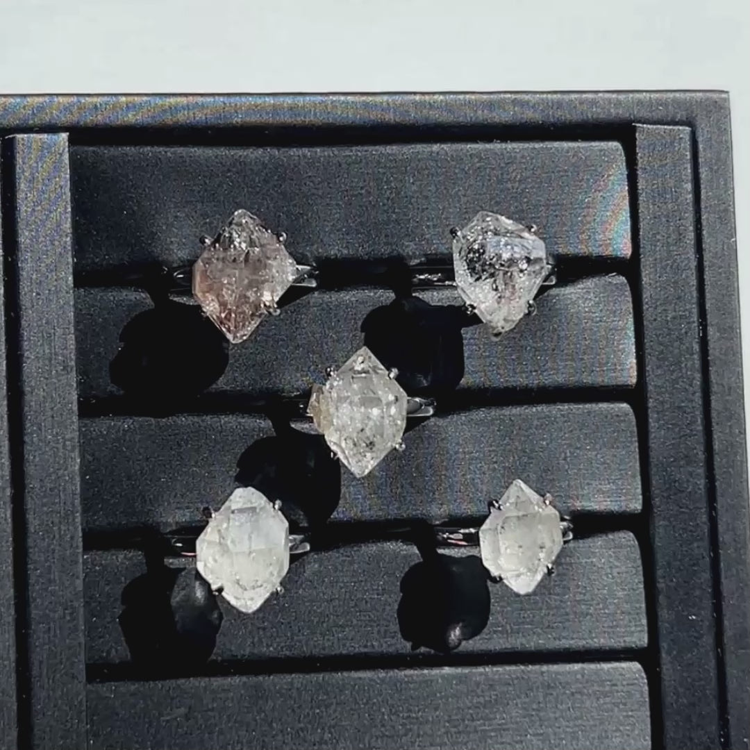 Rare Natural Herkimer Diamond Adjustable Silver Ring