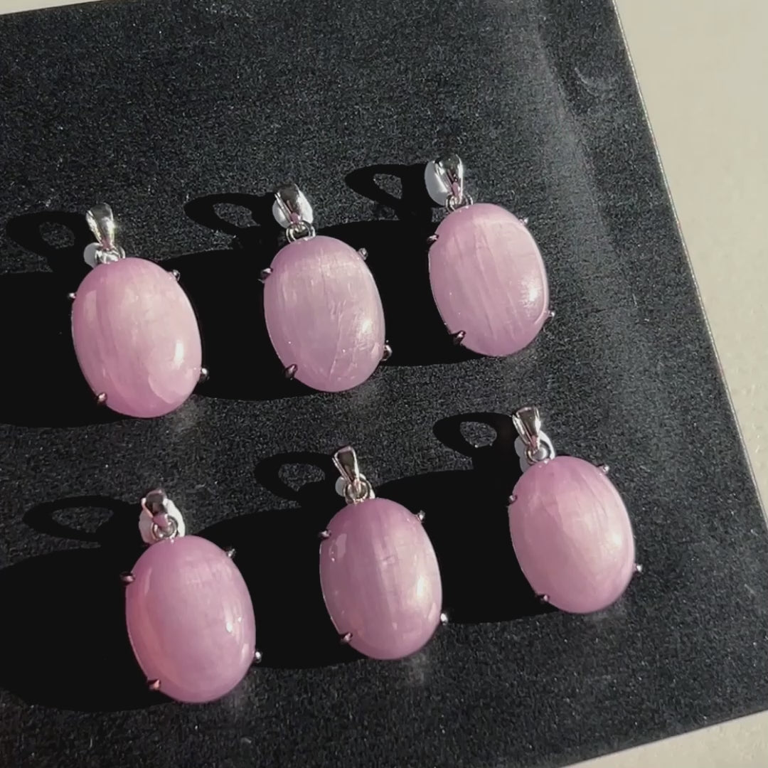 Rare Natural Kunzite Cat Eye's Flash 925 Sterling Silver Pendant (chain excluded)