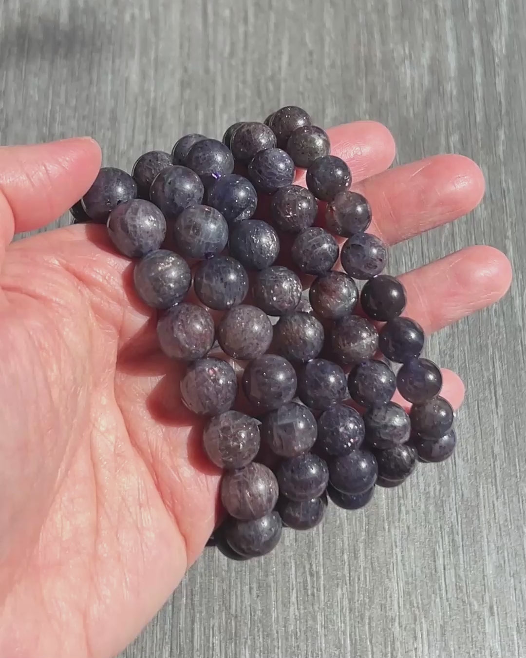 Rare Natural Sparkling Bloodshot Iolite Sunstone Bracelet in 7-11mm