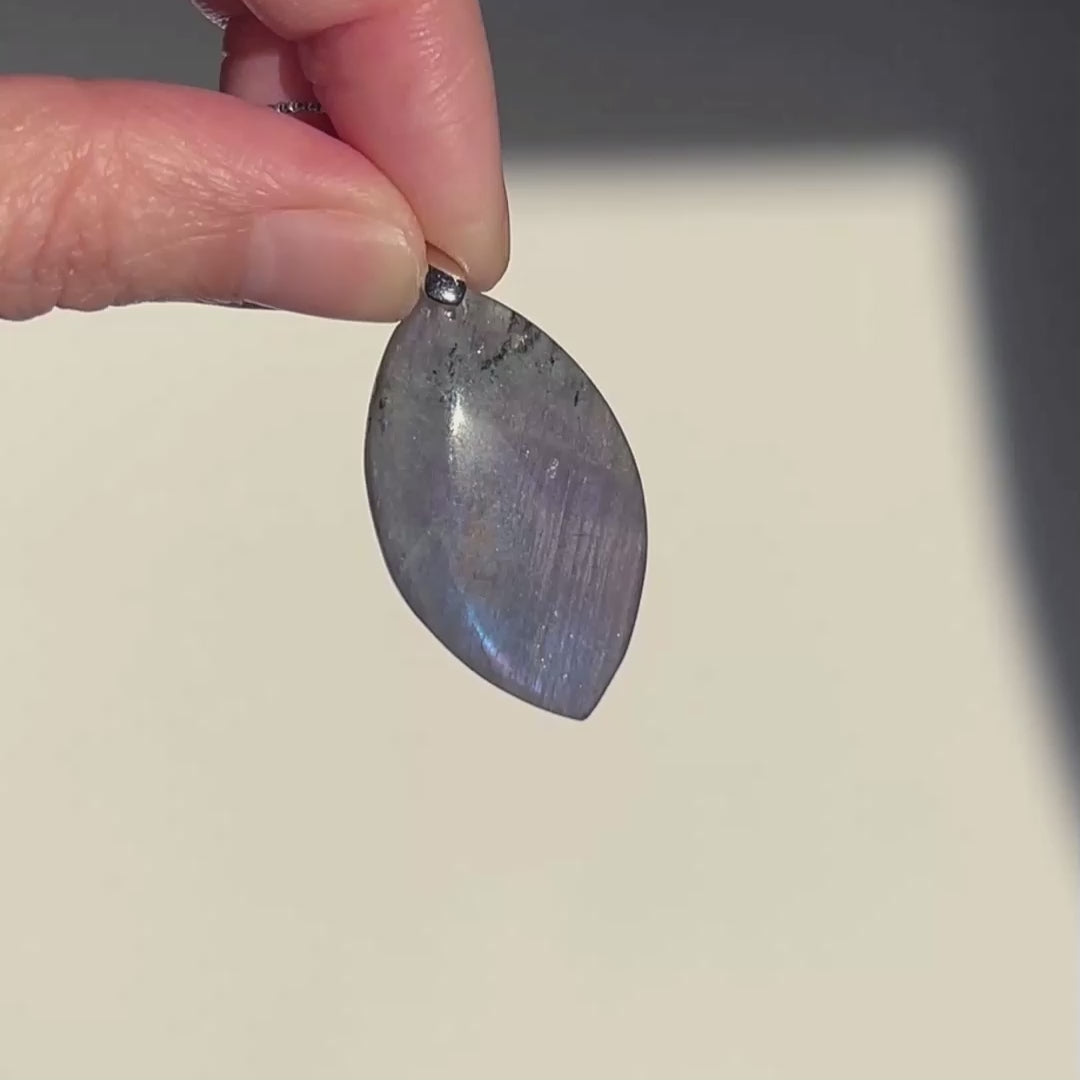 Rare Purple Rainbow Labradorite 925 Sterling Silver Pendant (chain excluded)