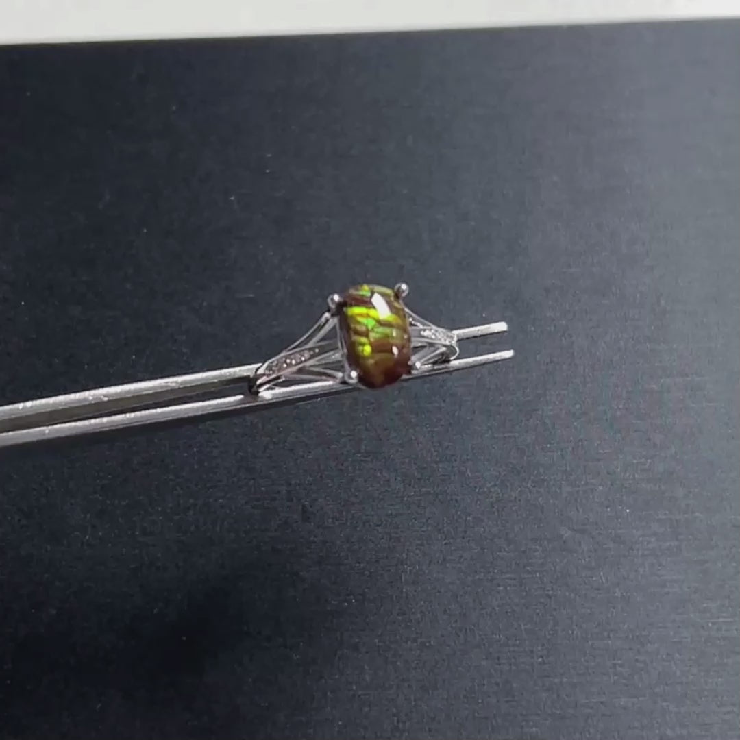 Rare Rainbow Ammolite Adjustable 925 Sterling Silver Ring
