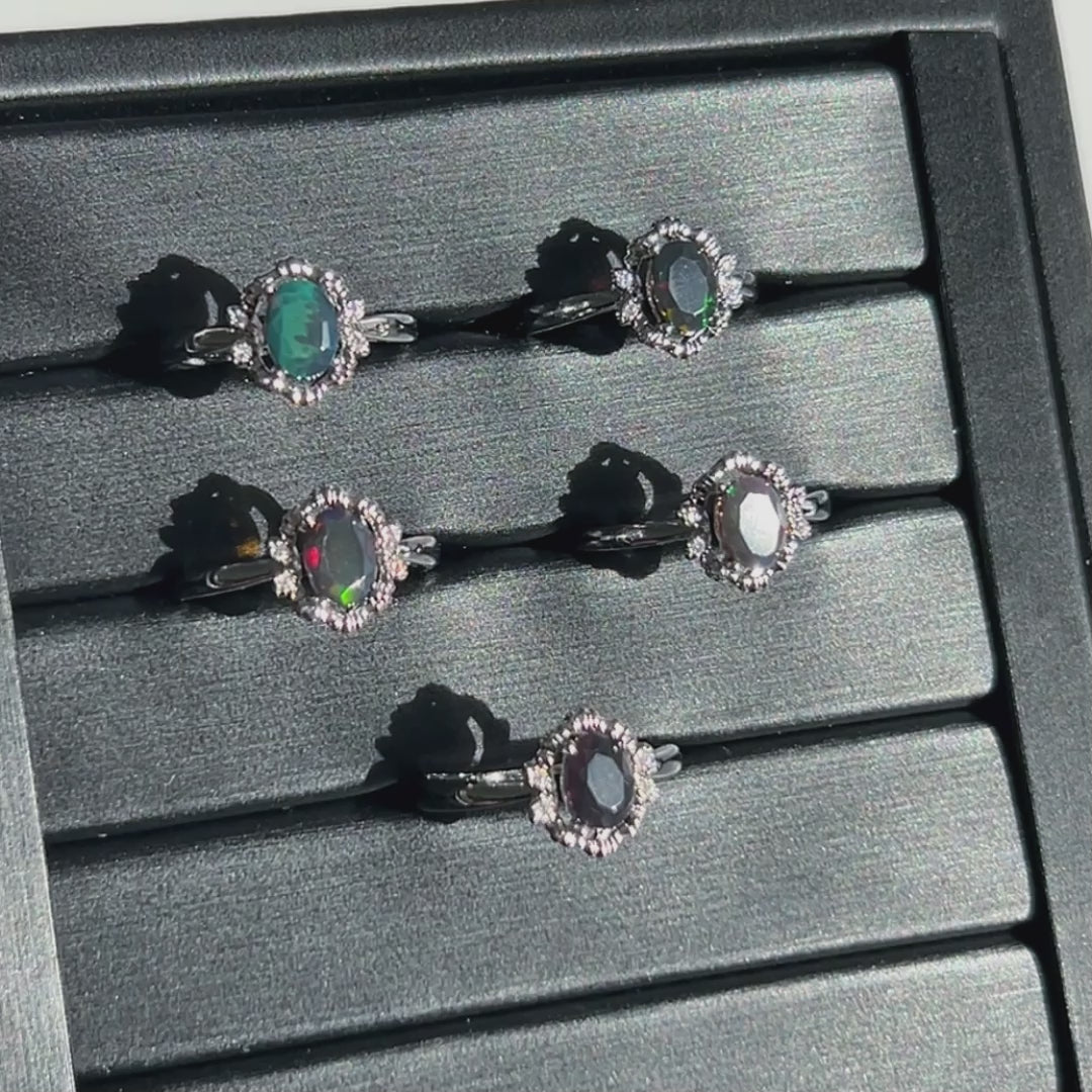 These black opal rings would be look darker without sunlight.