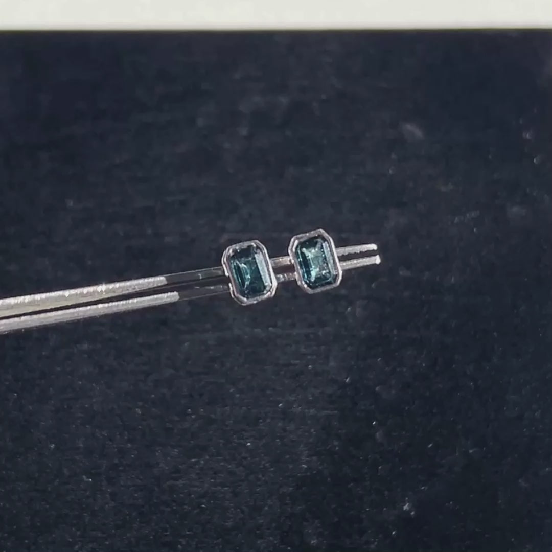 Topaz in London Blue in Rectangular Silver Stud Earrings